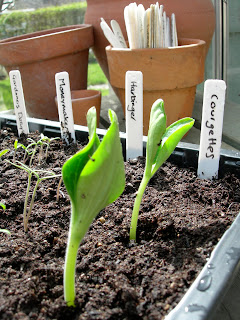 My Courgettes have been happily growing on the windowsill - now it's time to give them a pot each so they have more room to grow.